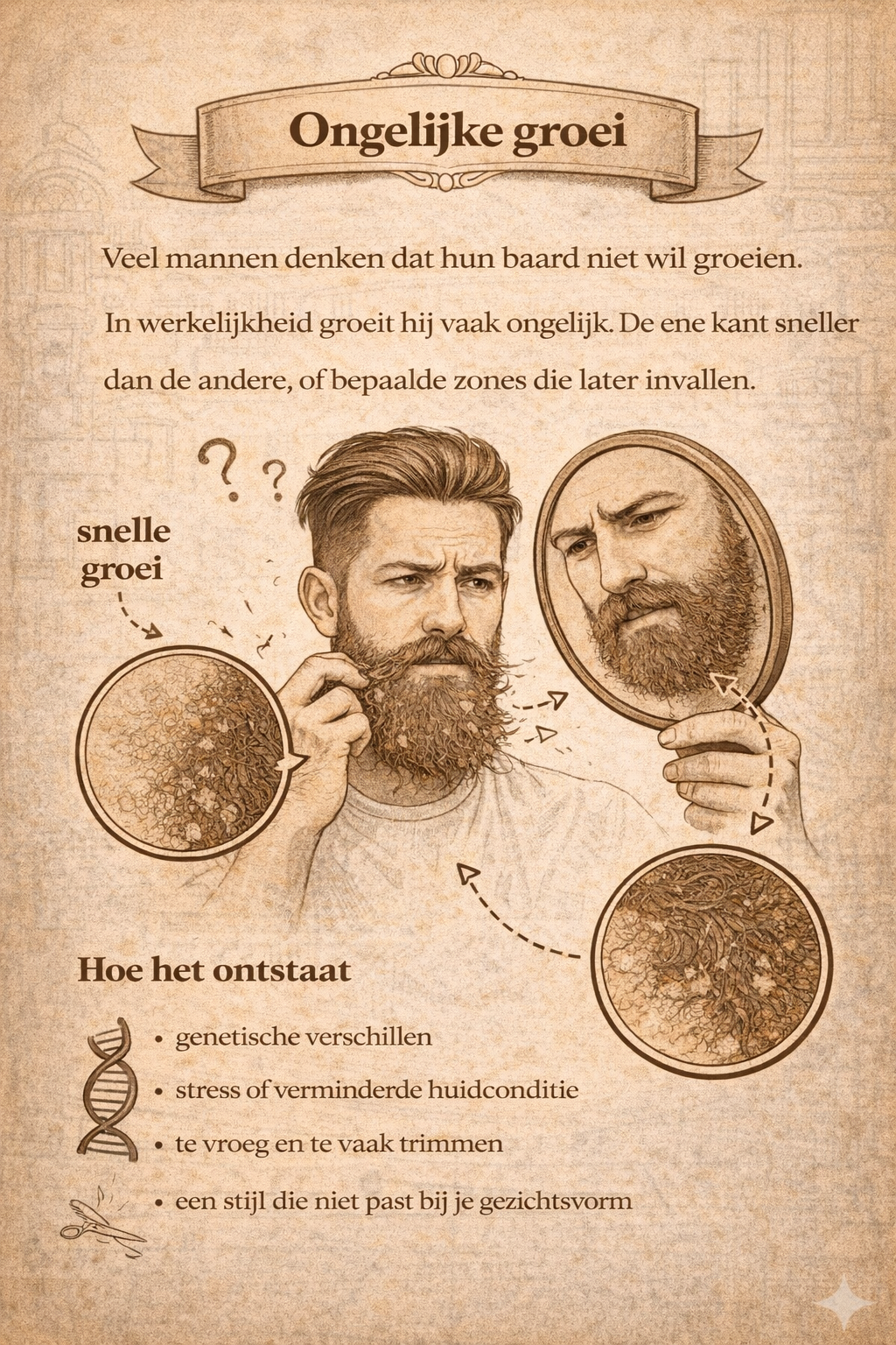 Wanneer je baard ongelijk groeit, lijkt het soms alsof hij nooit echt vol zal worden. Sommige plekken lopen achter en andere gaan sneller. Dat kan frustrerend zijn, zeker in de eerste maanden.